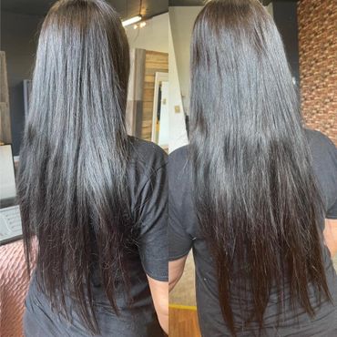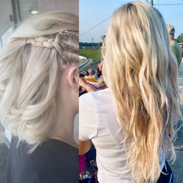 Fusion Hair Extensions are one of the original forms of hair extensions. They are made up of individual hairs and keratin bonding material. Because your own hair is made up mostly of keratin, this glue does not damage the hair when the extensions are installed. This method of hair extensions can last anywhere from 3-5 months with no additional maintenance after installation.