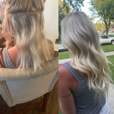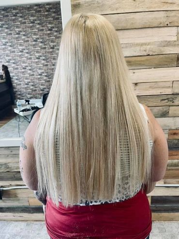 Tape In Extensions are the most popular hair extension trend on the market. Tape in hair extensions are thin tape wefts, 1 inch wide pre-taped hair wefts, that get "taped-in” in between your own hair in “sandwich” like bonds. It is the most requested hair extension method in salons worldwide. This method of hair extensions require maintenance every 6-9 weeks.